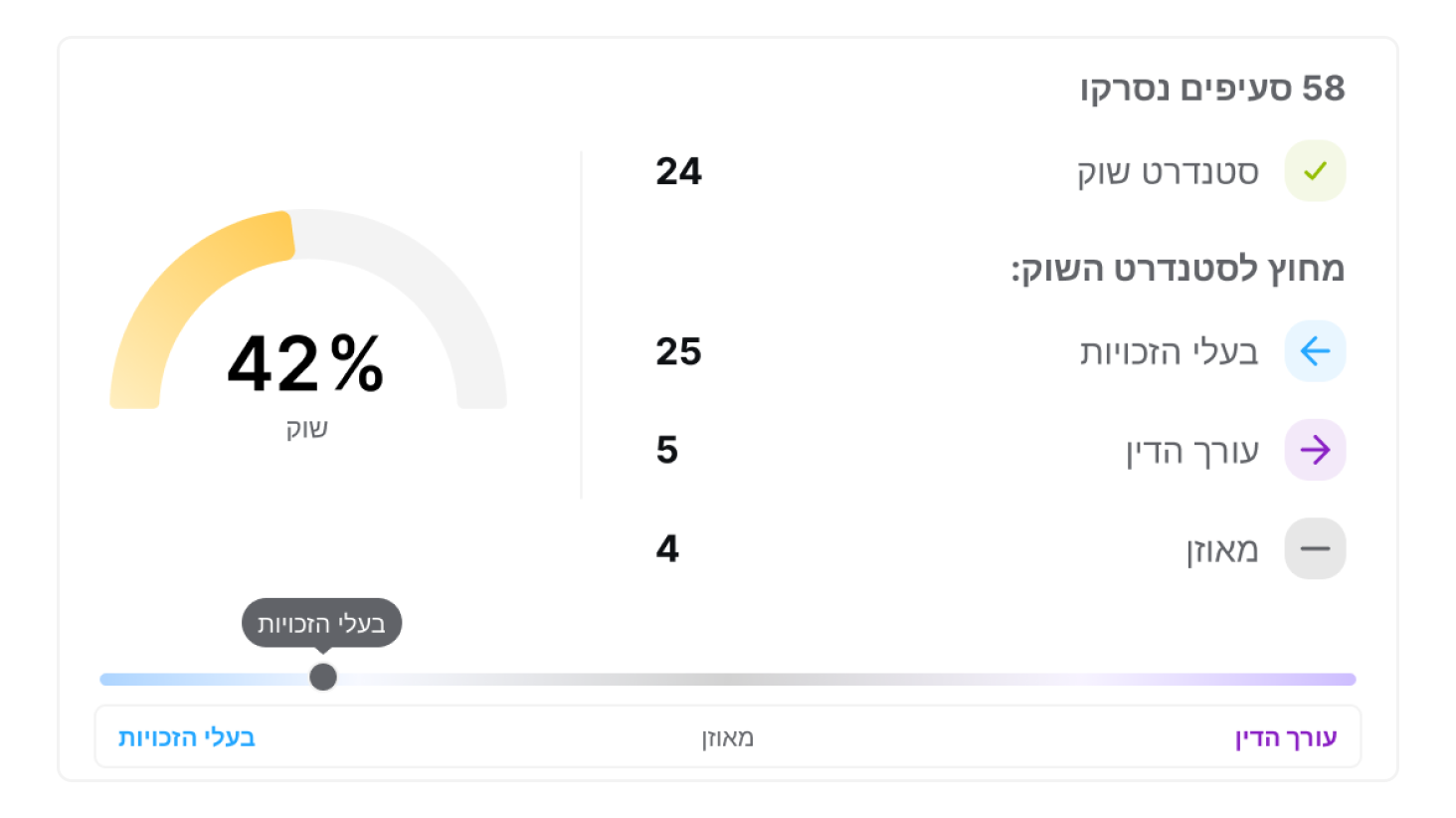כיום, "השוואה לסטנדרט השוק" היא בכוונה כללית: היא עובדת על פני סוגי מסמכים שונים, כך שאפשר להעלות כמעט כל הסכם ולקבל התאמה לסטנדרט השוק.